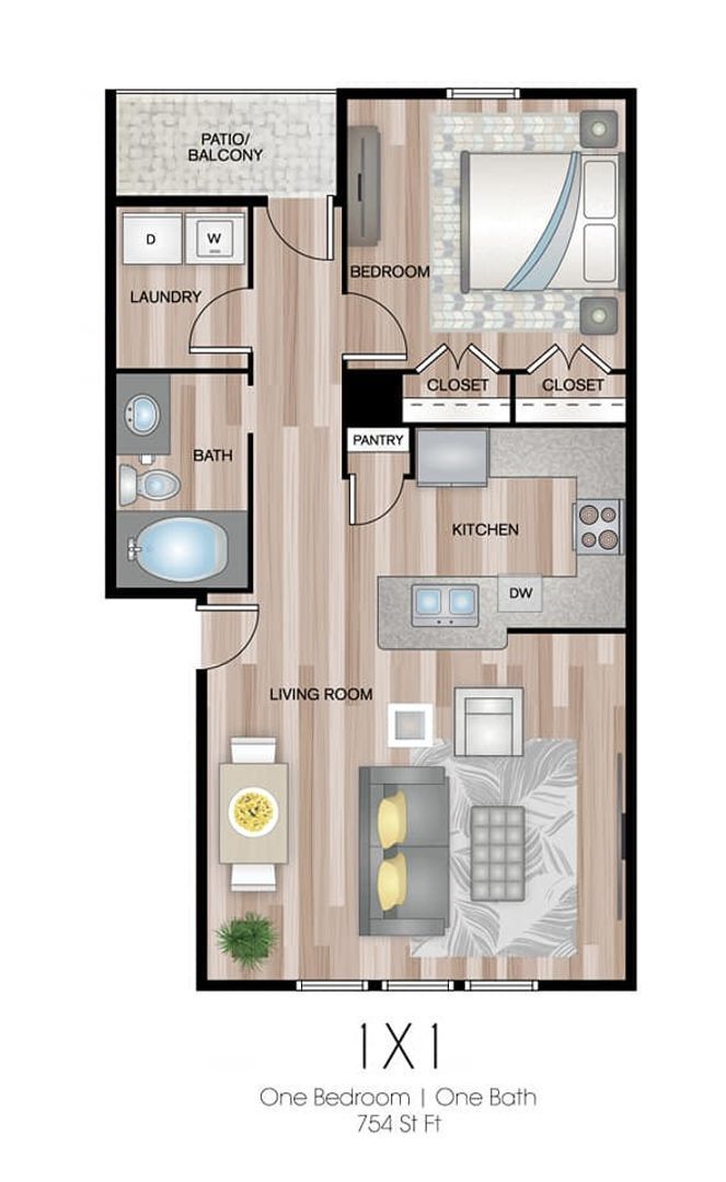 Our 1 bedroom units are 756 sq. ft. All bedrooms stay cool with beautiful ceiling fans and a window in each bedroom to let in plenty of natural light. Each unit comes with the finest upgrades throughout that make your living experience wonderful. Hanging space is plentiful and each closet also features a top shelf for extra storage.