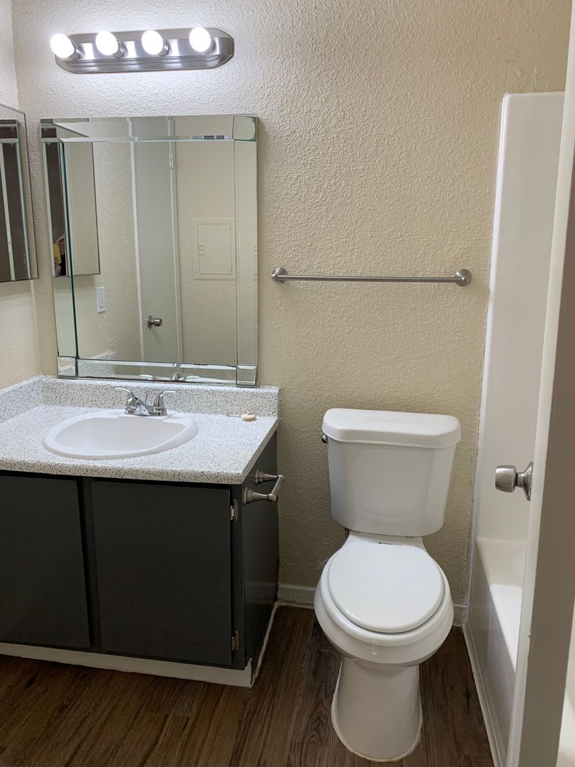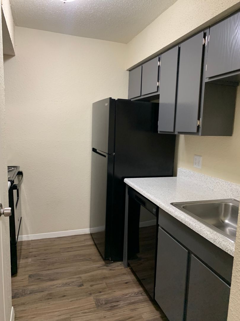Our two-bedroom, one-bath units are an amazing 897 sq. foot of coziness. The open floor plan is spacious and has a patio right off the living room so there is plenty of natural light. The bedrooms are tucked away down the hall to create some peace and quiet when needing to relax. A guest bath in the hall boasts a shower/tub combo and offers an extra-long vanity along with a nice-sized linen closet.