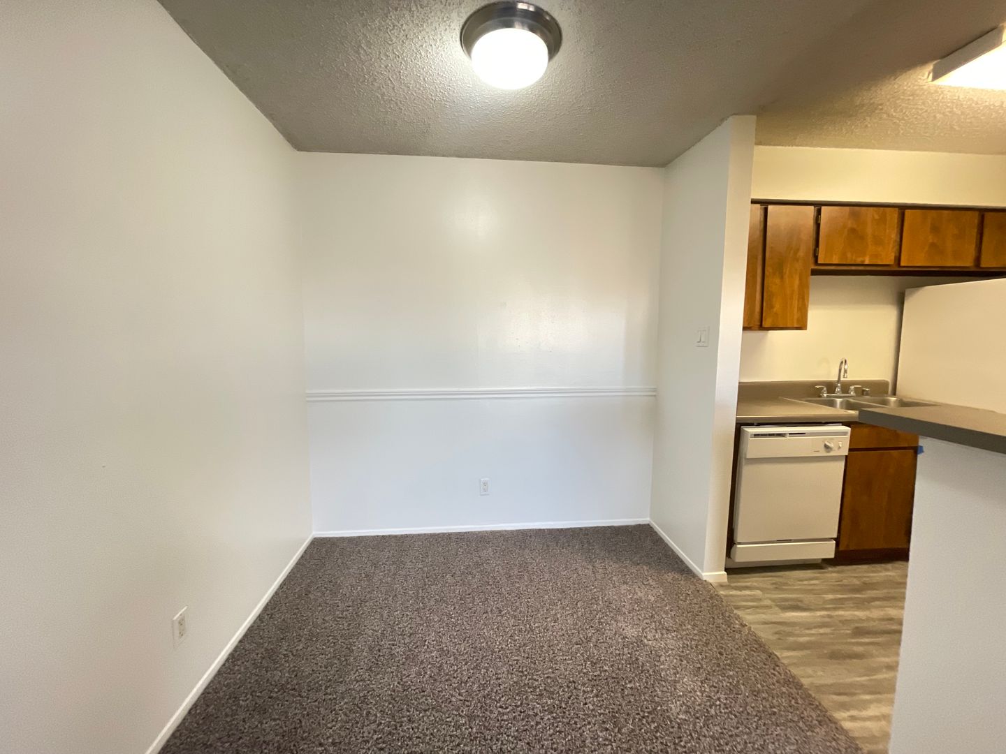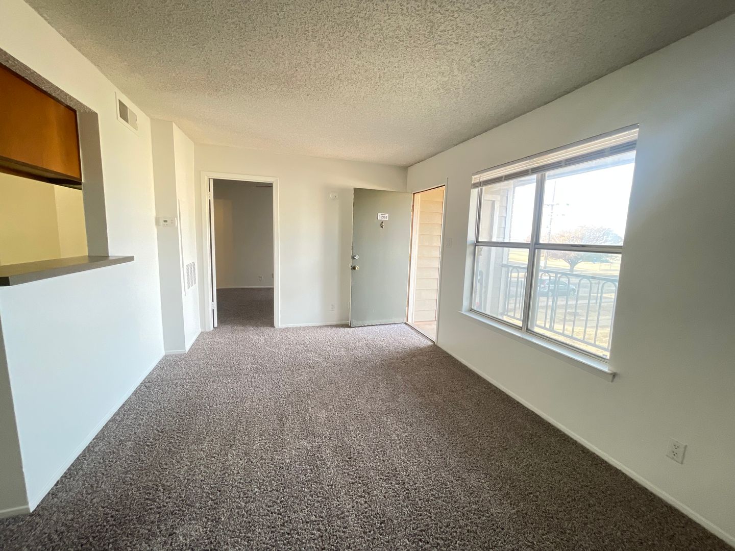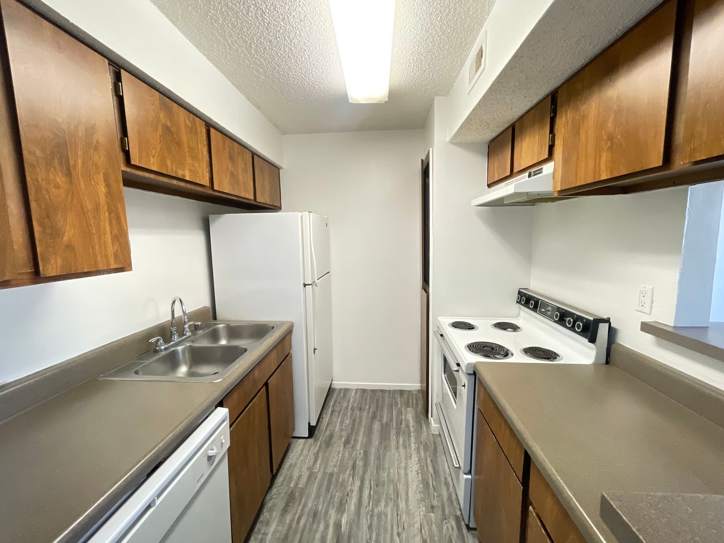 The entry to each home allows a full view of the living room and dining room. You can also sneak a peek into the galley kitchen through the open bar area! The patio or balcony next to the front door offers plentiful natural sunlight and helps to present a bright and uplifting living space. Select floor plans have a patio or balcony that will feature a storage closet for all your extras! The expansive living room is perfect for entertaining or relaxing and features abundant wall space to hang photos, posters and decor to create the home of your dreams. The living room seamlessly blends into the corner dining area and this nook is the perfect size for either a four-seat or six-seat dining table. Don't have a dining room table? No problem! This space is perfect for a gaming station or a homework/work bench. The long kitchen bar looks amazing with barstools or pub chairs tucked underneath and offers plenty of room to "eat on the go"! The kitchen features plenty of storage so all your cooking essentials can be neatly organized. All appliances are included in the kitchens except the microwave...don't forget to bring your own. Cook while you watch TV, entertain friends or curl up on your couch...the options in this living/dining/kitchen space are endless!