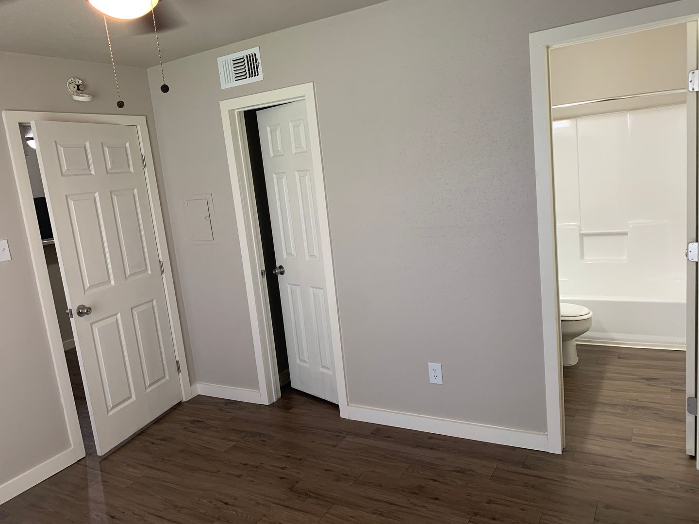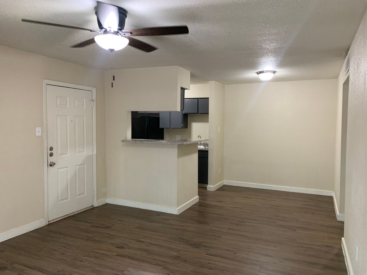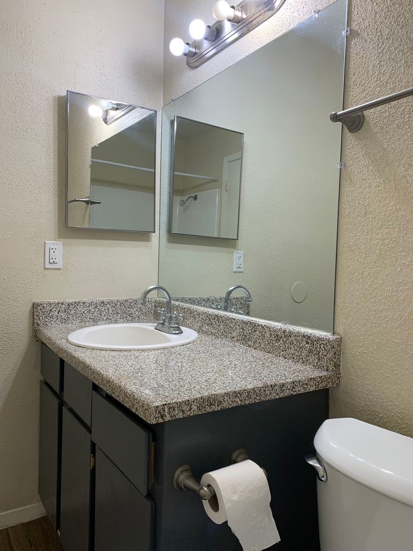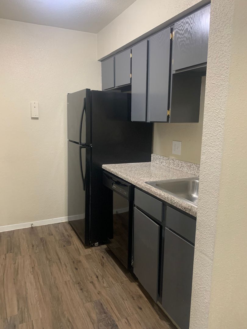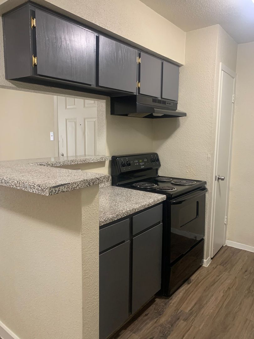 Our two-bedroom, one-bath units are an amazing 897 sq. foot of coziness. The open floor plan is spacious and has a patio right off the living room so there is plenty of natural light. The bedrooms are tucked away down the hall to create some peace and quiet when needing to relax. A guest bath in the hall boasts a shower/tub combo and offers an extra-long vanity along with a nice-sized linen closet.