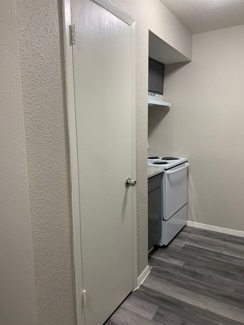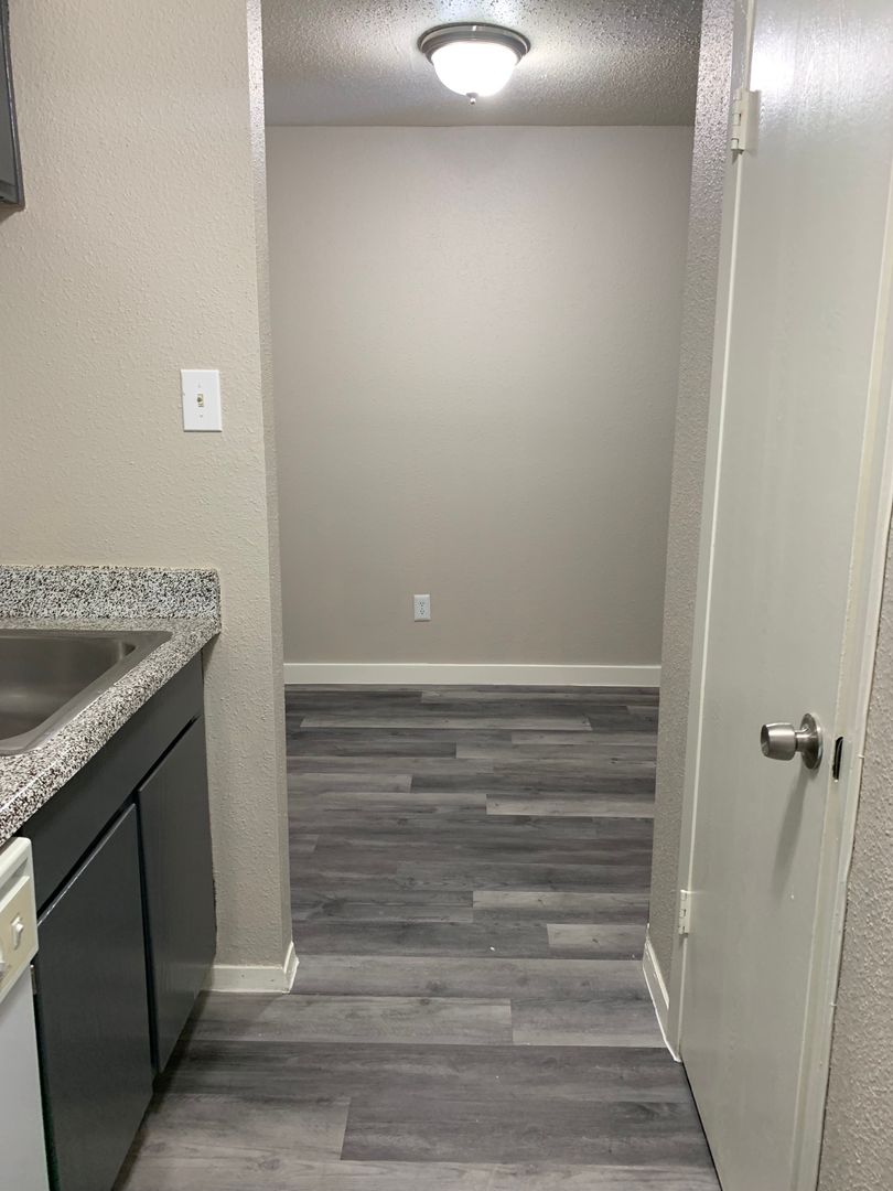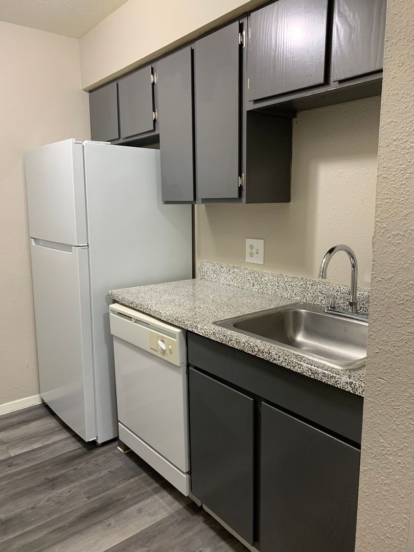 Our two-bedroom, one-bath units are an amazing 897 sq. foot of coziness. The open floor plan is spacious and has a patio right off the living room so there is plenty of natural light. The bedrooms are tucked away down the hall to create some peace and quiet when needing to relax. A guest bath in the hall boasts a shower/tub combo and offers an extra-long vanity along with a nice-sized linen closet.