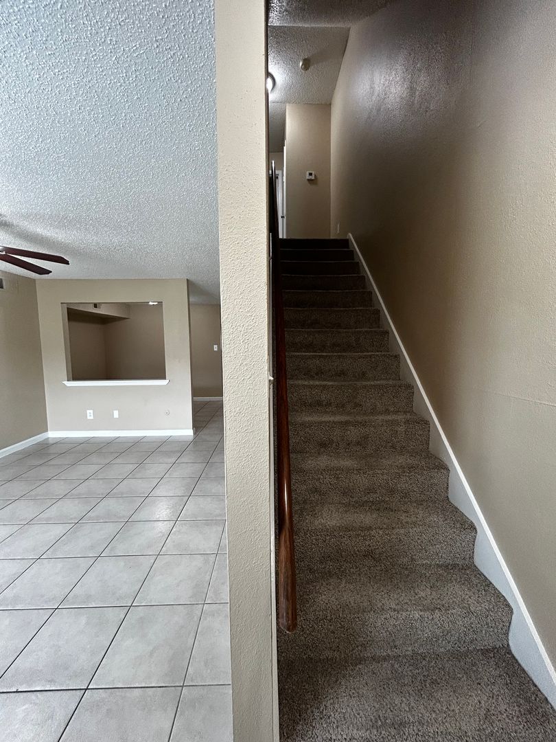 The interior of each townhome ranges from basic to fully remodeled to fit your living needs, all are large, warm and inviting. Unit interiors have silver fixtures, stainless steel sinks and white, black or stainless appliances, white faux-wood blinds create a beautiful, stylish backdrop for your belongings. Flooring depends on the style of the unit ranging from tile to wood downstairs while all have carpet upstairs. Each home offers full size washer and dryer connections in each unit. Don't have a washer and dryer set? We have some info from different companies that can help you rent a set!