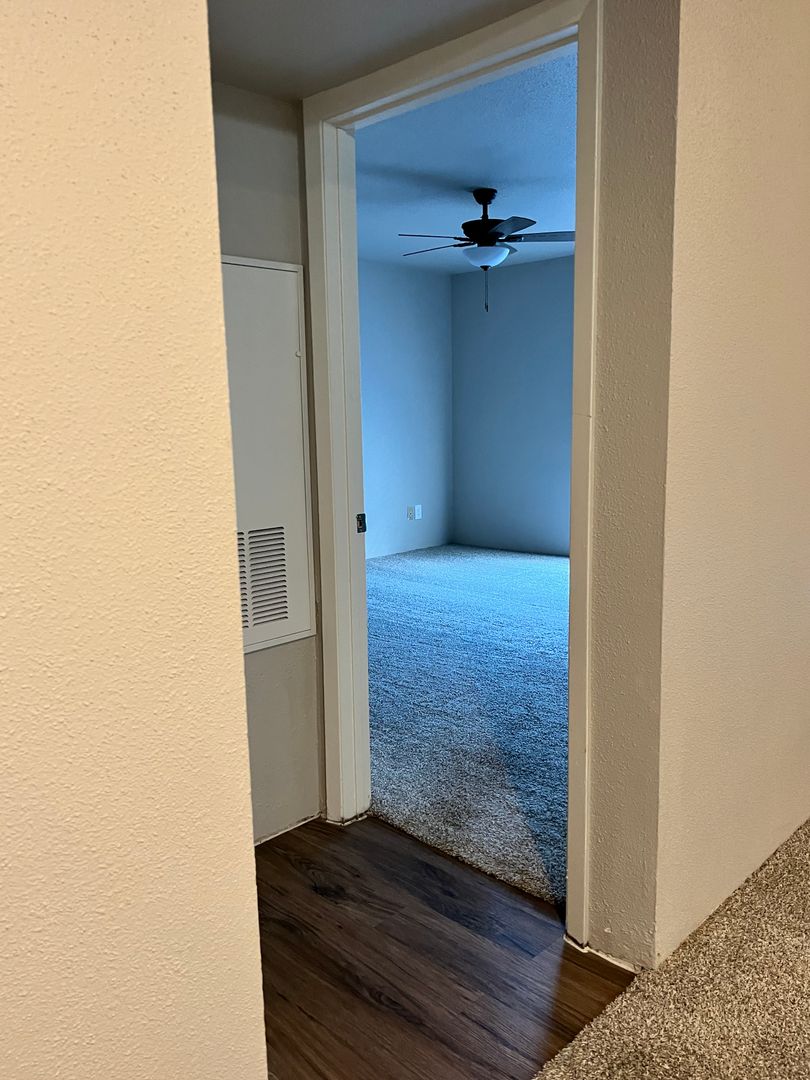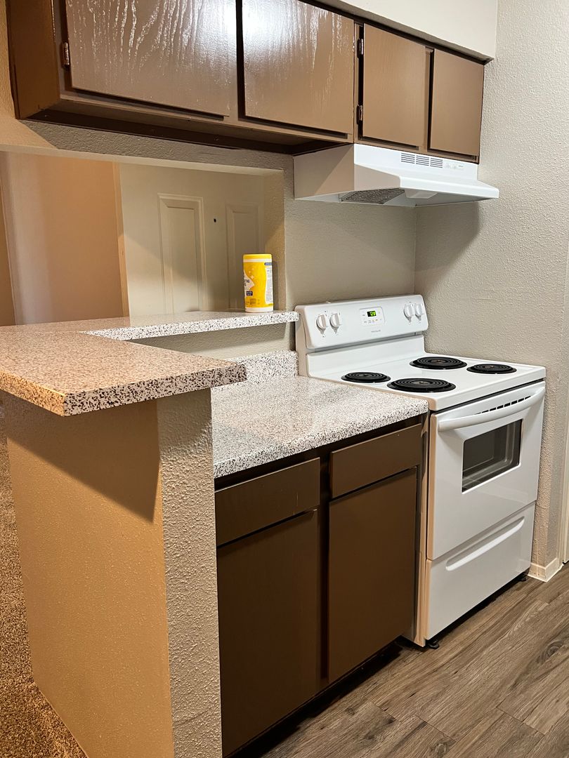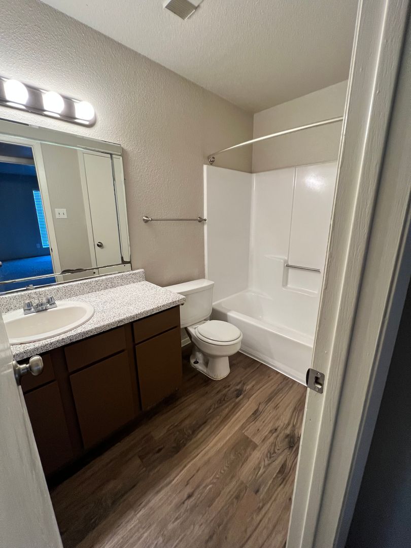 Our two-bedroom, one-bath units are an amazing 897 sq. foot of coziness. The open floor plan is spacious and has a patio right off the living room so there is plenty of natural light. The bedrooms are tucked away down the hall to create some peace and quiet when needing to relax. A guest bath in the hall boasts a shower/tub combo and offers an extra-long vanity along with a nice-sized linen closet.