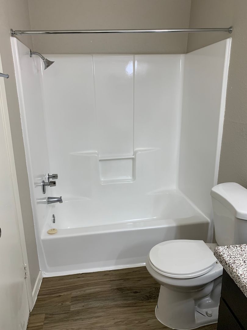 Option two is our spacious 703 sq. foot 1-bedroom, 1-bath floor plan. The bedroom is large enough to easily accommodate a King-size bedroom suite. The closet in this floor plan has generous space along with built-in shelving for shoes or storage. There is plenty of hanging room for all your clothing and winter jackets. The bathroom has a large vanity with a medicine cabinet. The shower/tub combo is perfect for relaxing after a long day at work, with your towel within reach from a spacious linen closet.