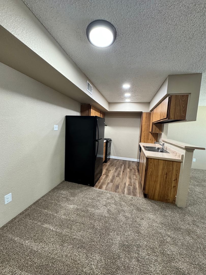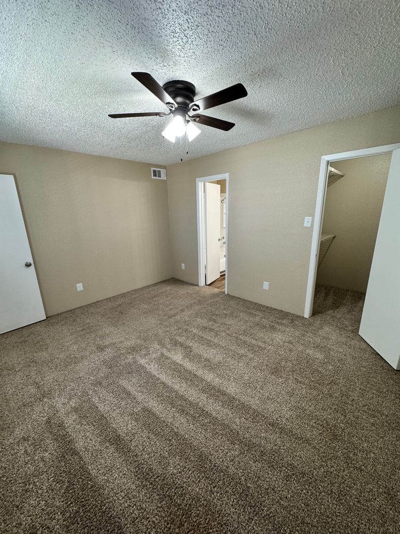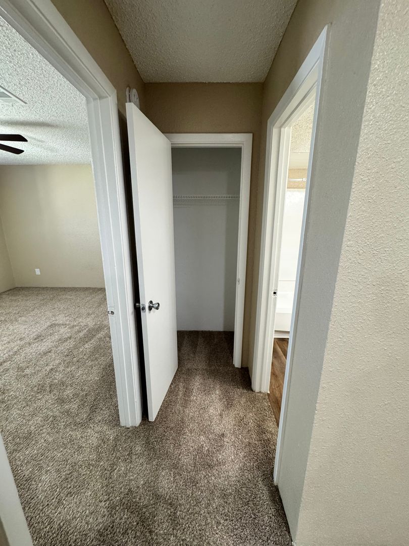 The interior of our apartment is modern, yet warm and inviting. Unit interiors have silver fixtures, stainless steel sinks and white or black appliances. The white faux-wood blinds create a beautiful, stylish backdrop for your belongings and ceiling fans in every room. The apartments are carpeted throughout, and the kitchens and bathroom come with vinyl flooring. Each unit offers full size washer and dryer connections. Don't have a washer and dryer set? We have some info from different companies that can help you rent a set. Don’t want to rent? We offer an on-site laundry room with washer and dryers for your washing needs.