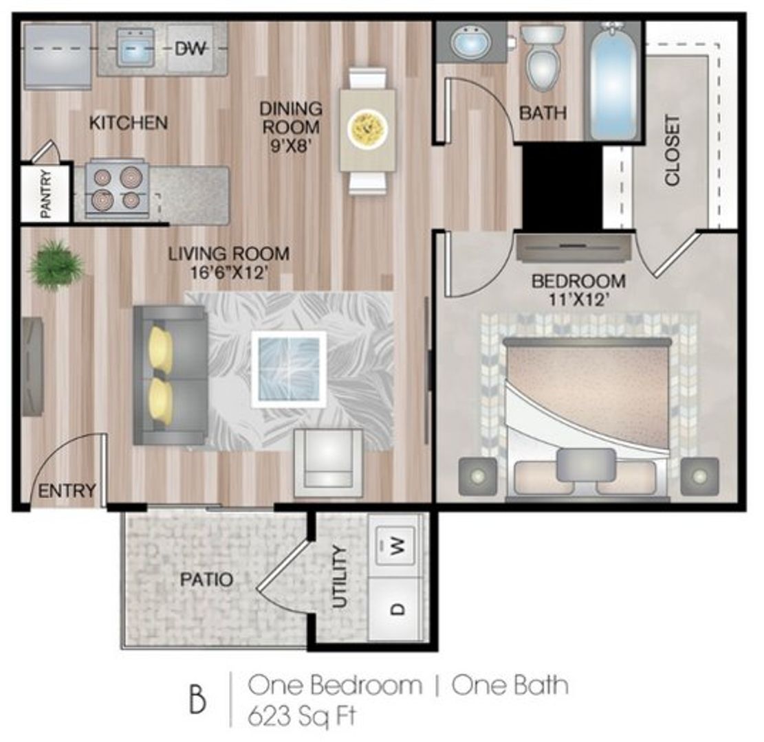 Come see our much-loved, best-of-both-worlds 1 bedroom 1 bathroom here at Oakridge! Interested in keeping your spending low but having a luxurious, spacious home too?? This one has tons of space and great features for a great price. You'll be amazed at the space:value ratio!! Each gorgeous apartment home features a full kitchen, pantry, open & super roomy floor plan, bedroom ceiling fan, a giant walk-in closet, guest entrance full bathroom with bath tub. central heat/air and an extra storage closet complete with washer & dryer connections on you private balcony or patio.