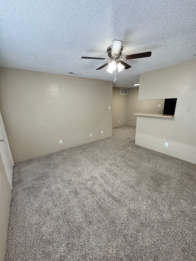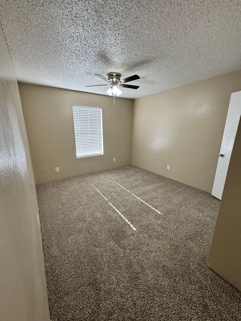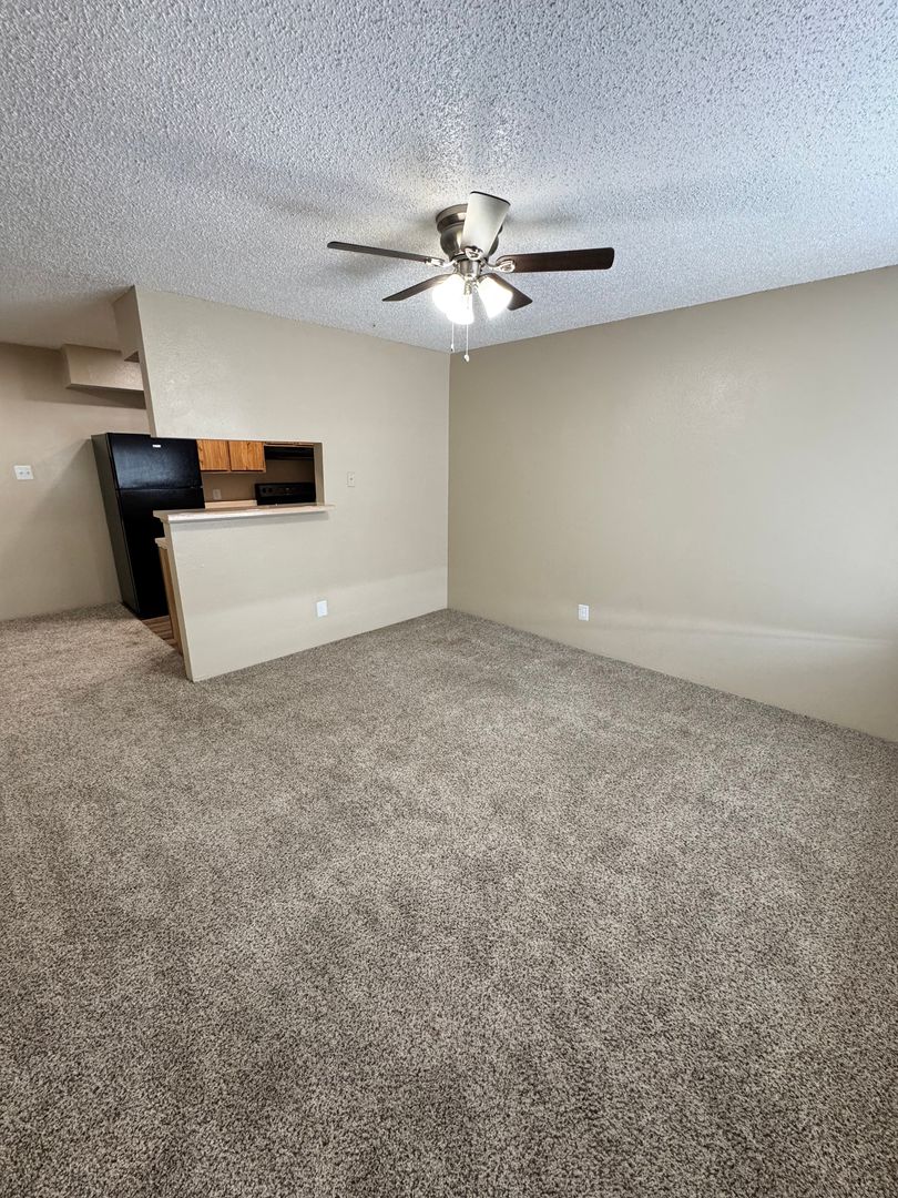 The interior of our apartment is modern, yet warm and inviting. Unit interiors have silver fixtures, stainless steel sinks and white or black appliances. The white faux-wood blinds create a beautiful, stylish backdrop for your belongings and ceiling fans in every room. The apartments are carpeted throughout, and the kitchens and bathroom come with vinyl flooring. Each unit offers full size washer and dryer connections. Don't have a washer and dryer set? We have some info from different companies that can help you rent a set. Don’t want to rent? We offer an on-site laundry room with washer and dryers for your washing needs.