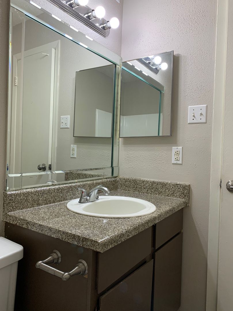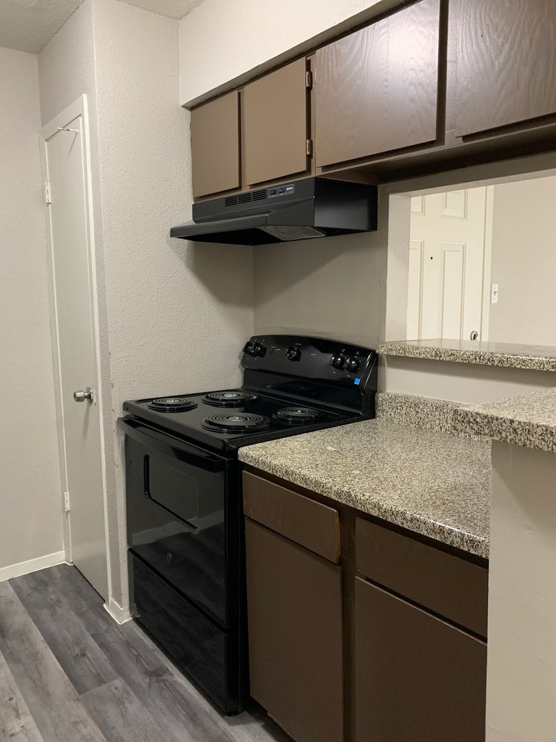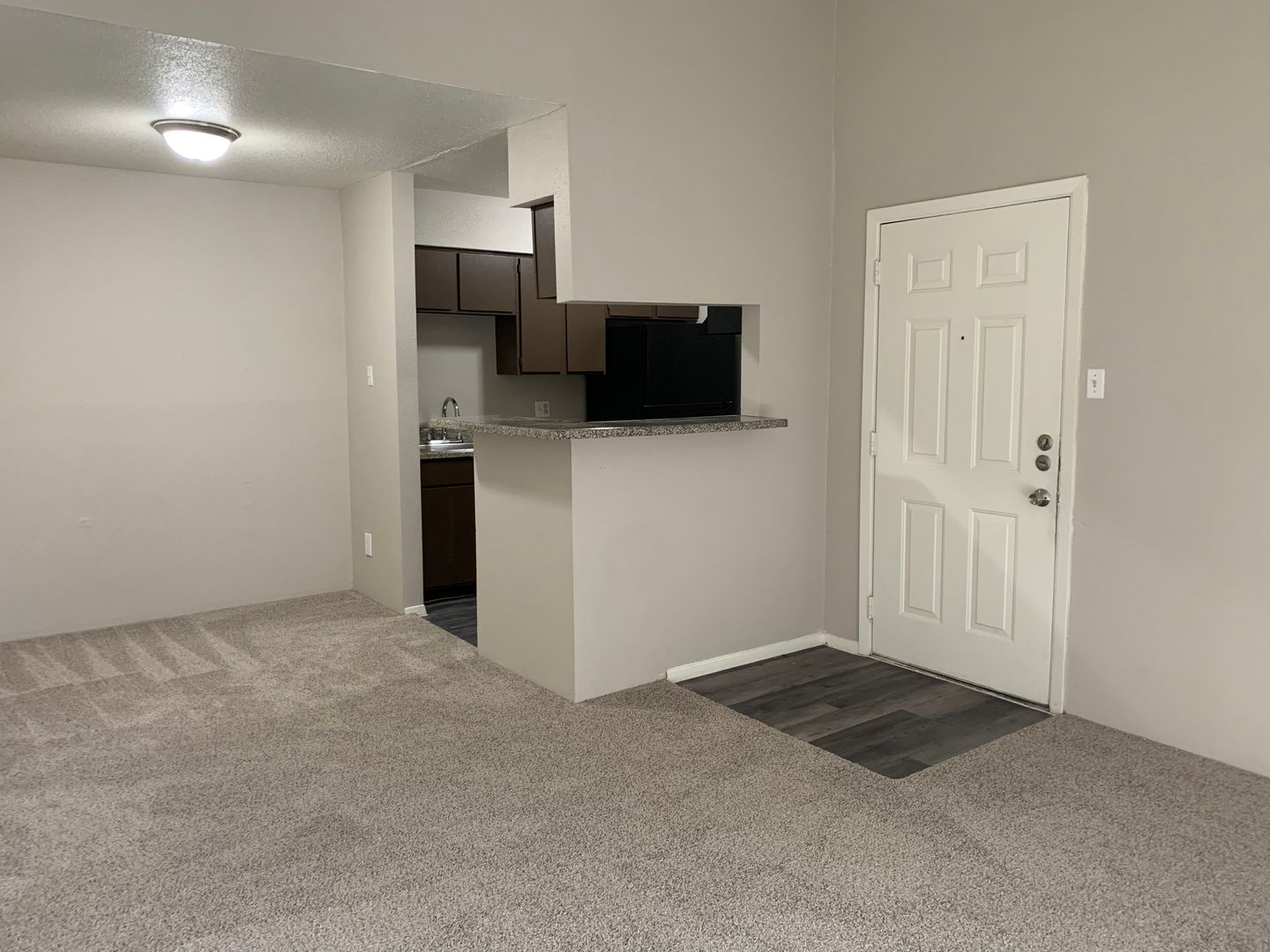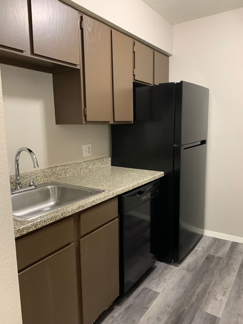 Our two-bedroom, one-bath units are an amazing 897 sq. foot of coziness. The open floor plan is spacious and has a patio right off the living room so there is plenty of natural light. The bedrooms are tucked away down the hall to create some peace and quiet when needing to relax. A guest bath in the hall boasts a shower/tub combo and offers an extra-long vanity along with a nice-sized linen closet.