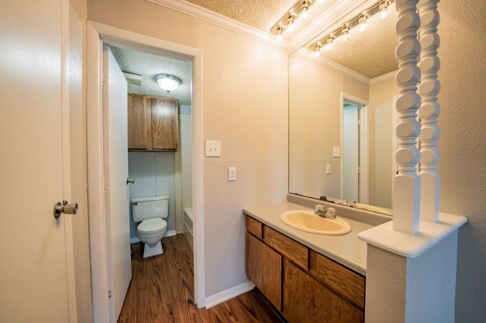 The bedrooms in each home is kept cool and bright with the help of another large window and ceiling fan. The huge closet and private bathroom are located in the master bedroom. Hanging space is plentiful and each closet also features a top shelf for extra storage. The bathrooms are the perfect size with a shower/tub combo so a relaxing soak or a quick rinse are both options after a long day! The cabinet storage under the bathroom vanity or the extra storage cabinet on the wall are designated spaces for bath towels or linens.
