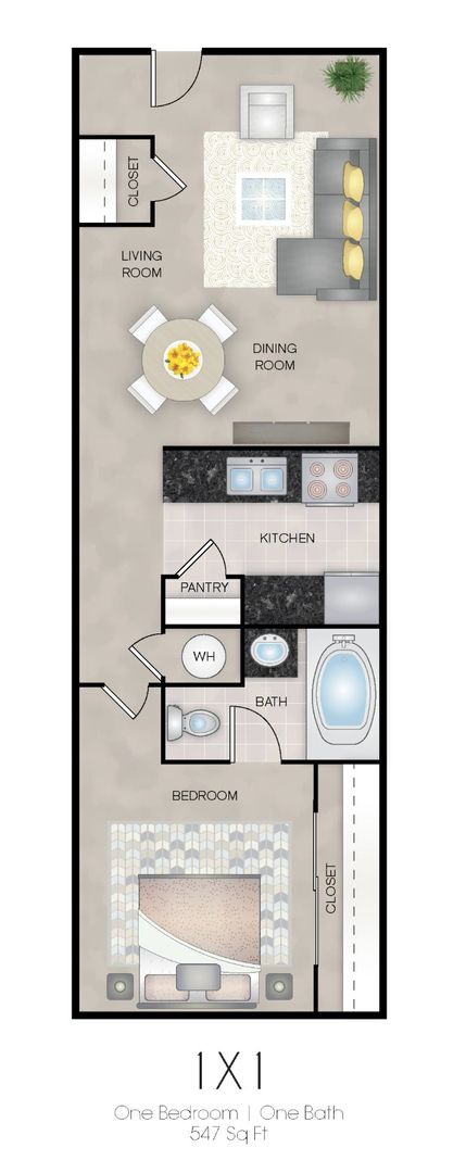 Cute. Comfy. 1 Bed/1 Bath – 547 Sq Ft